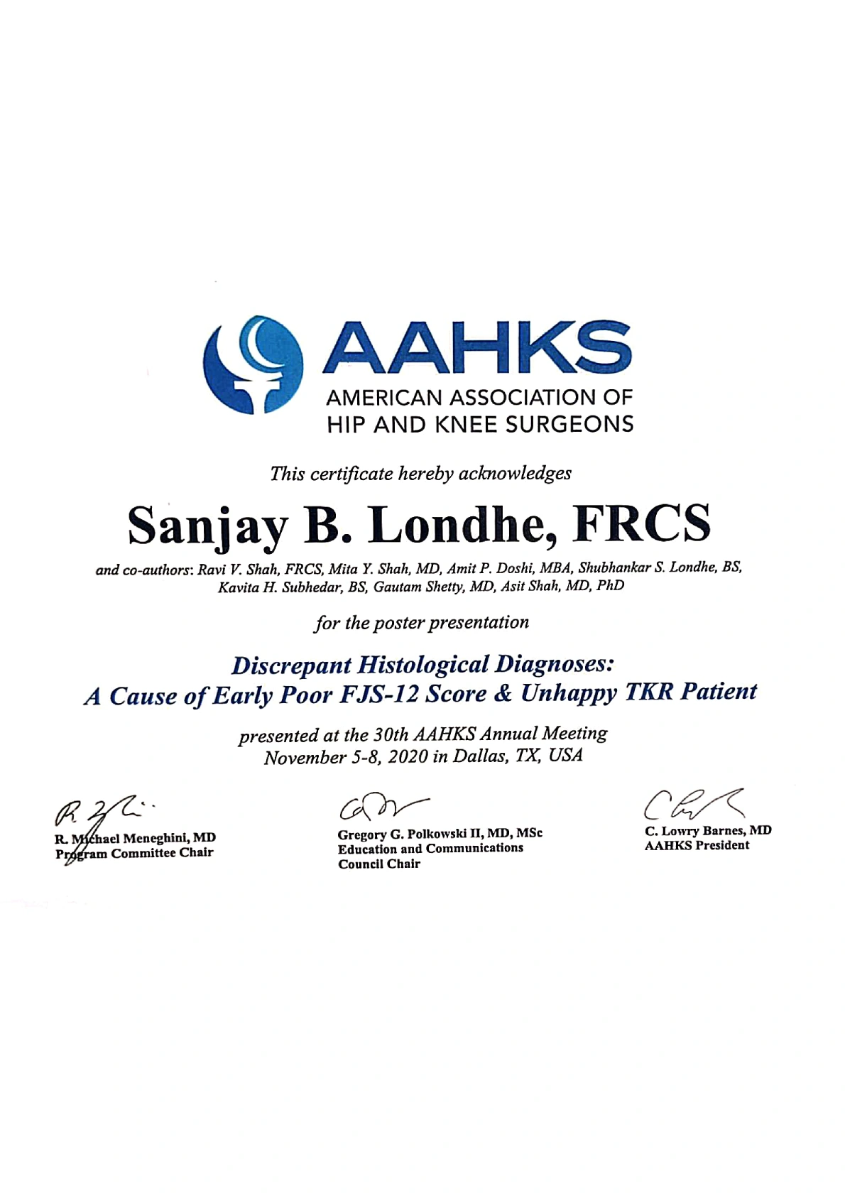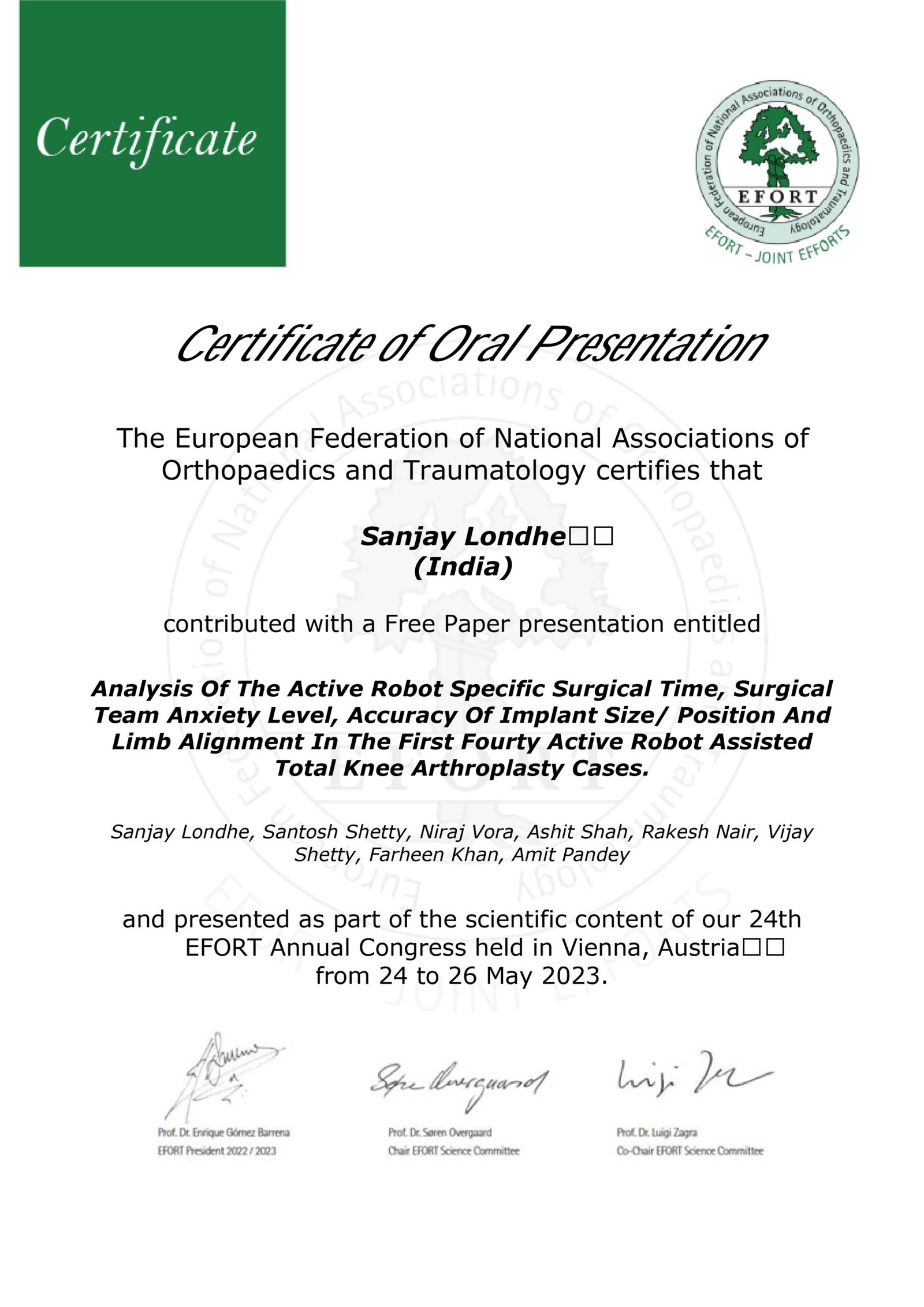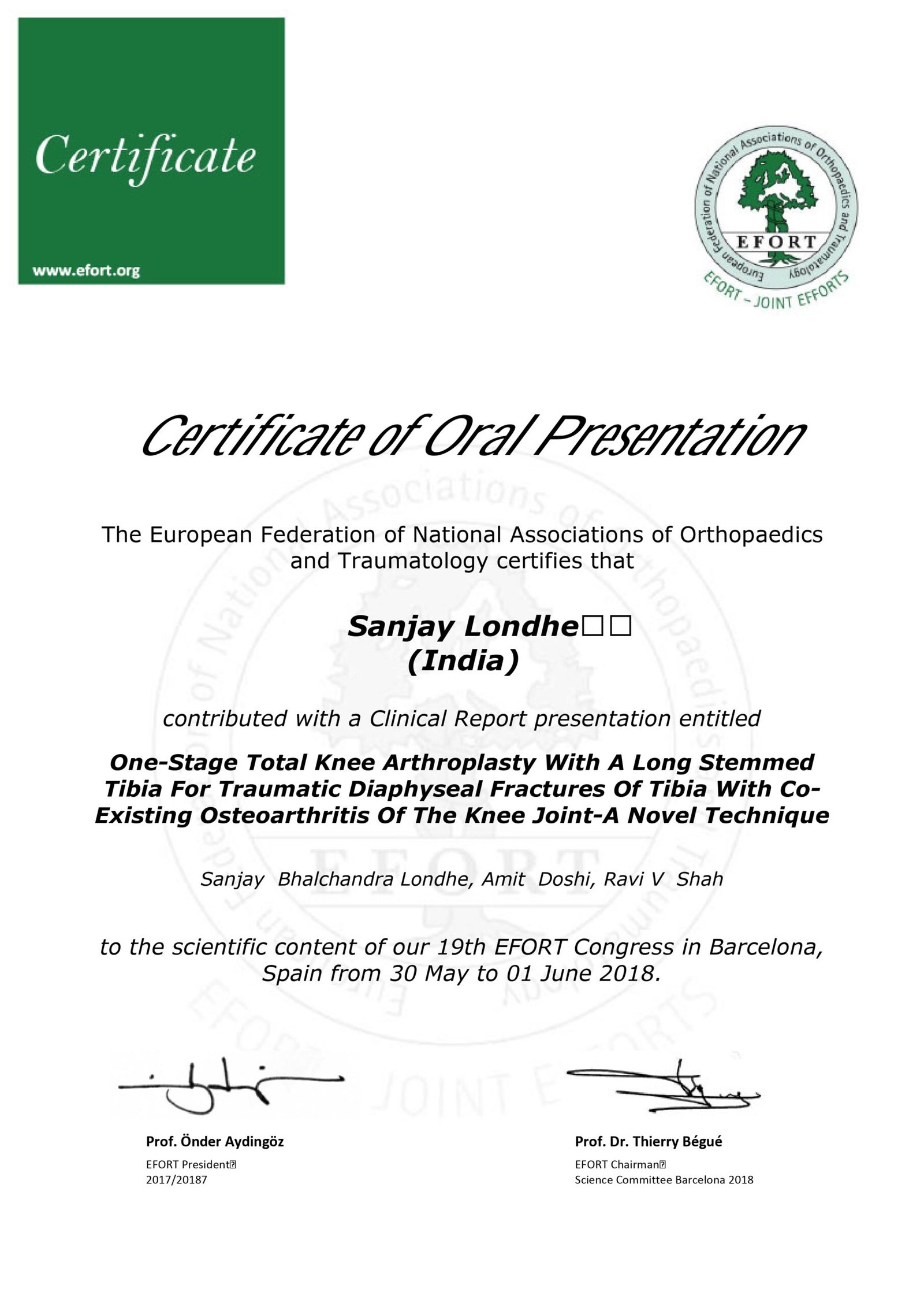 Dr. Sanjay B. Londhe – Certifications & Credentials