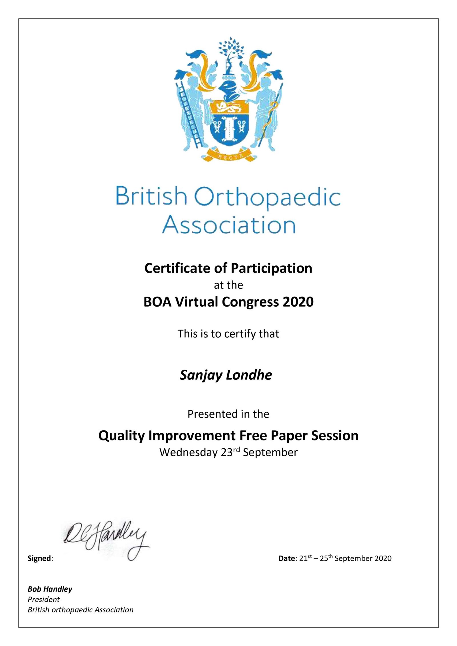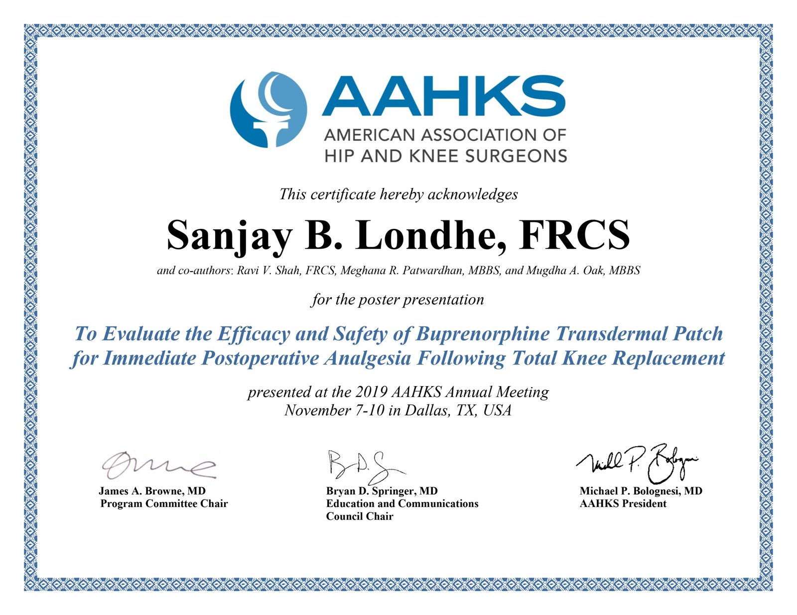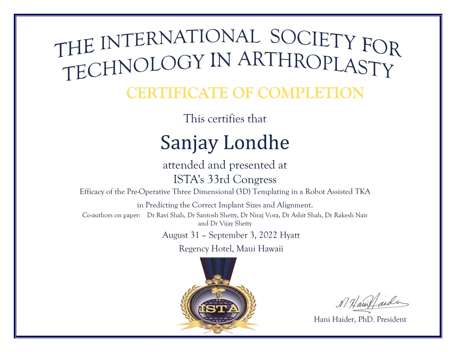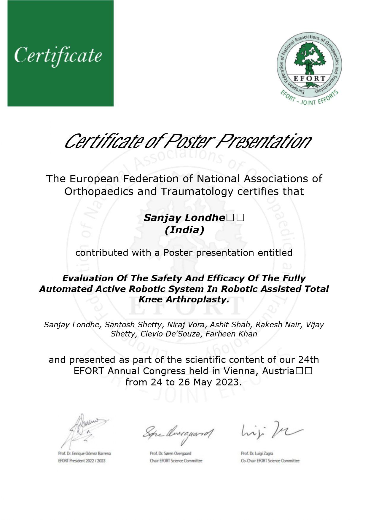 Dr. Sanjay B. Londhe – Certifications & Credentials